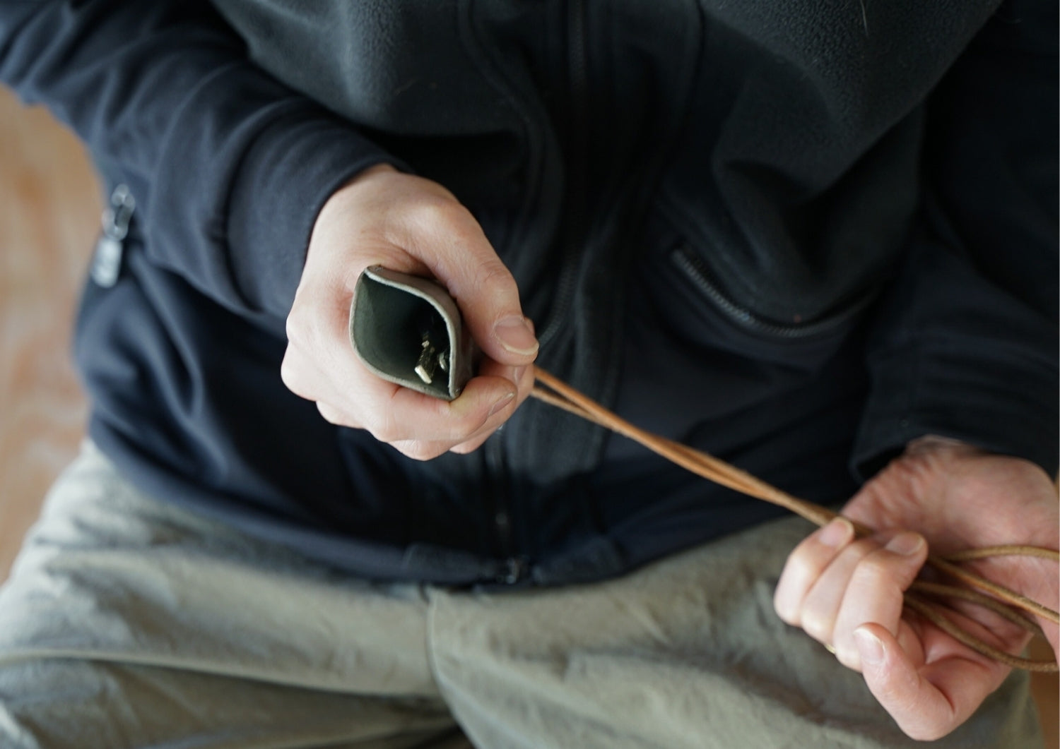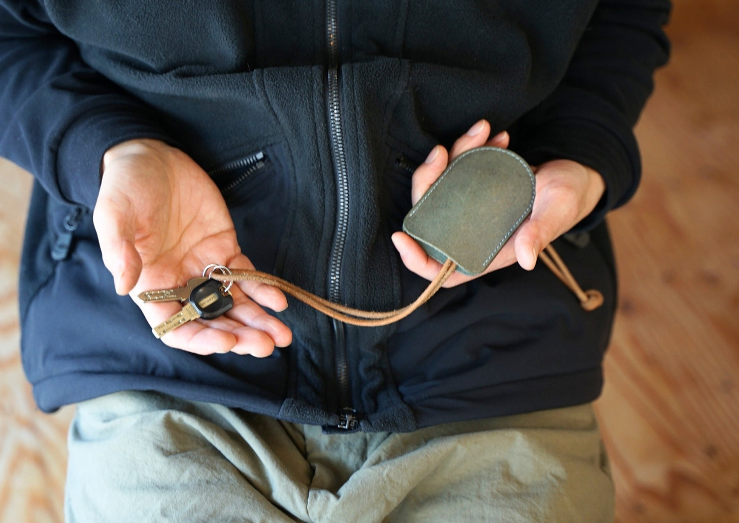 革ヒモ:首からも下げられる長さです。