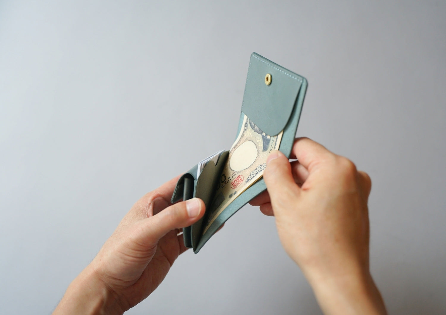 お札は折ることなく横にスライドして出し入れでき、カードもそのまま横向きで7枚ほど収納可能。収納枚数を絞ることで、キャッシュレス決済と併用すれば、より身軽な持ち運びができます。小銭入れのポケットは大きく開くため、出し入れがスムーズな点もこだわりのポイントです。