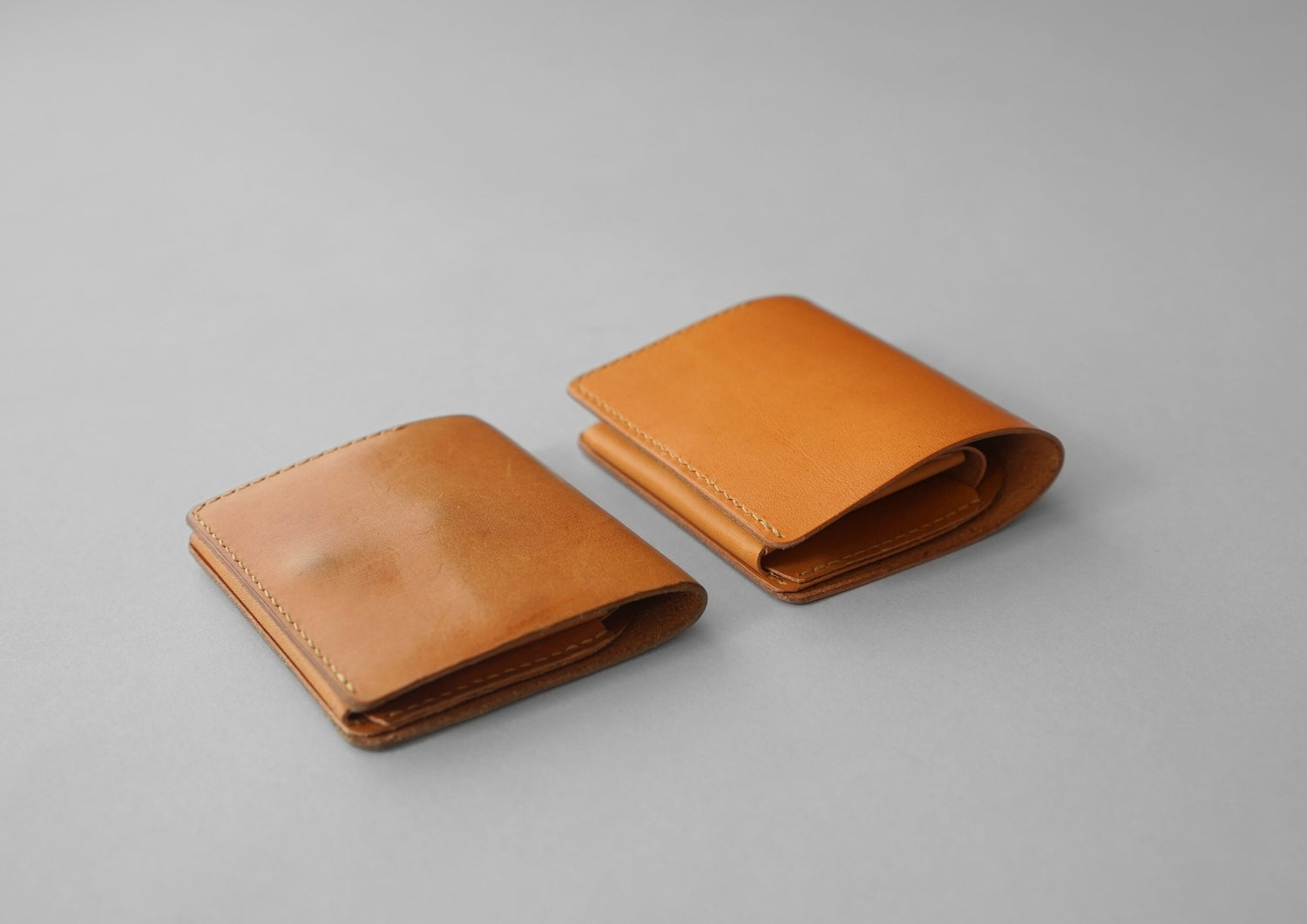 余計な加工を施していないため、牛が生きていた時についたキズなどが残っている場合がございます。植物タンニンなめし牛革の証でもあるエイジング(経年変化)も特徴です。