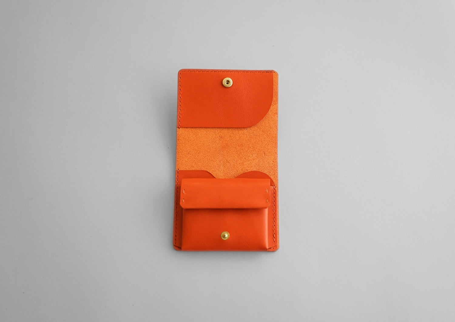 一見すると一部屋だけのシンプルな作りですが、小銭とカードがそれぞれ独立して収納できるのがポイントです。小銭とカードが互いに重なることのない配置になっているため、全体が膨らまず、収納時でもスリムな状態を保ちます。