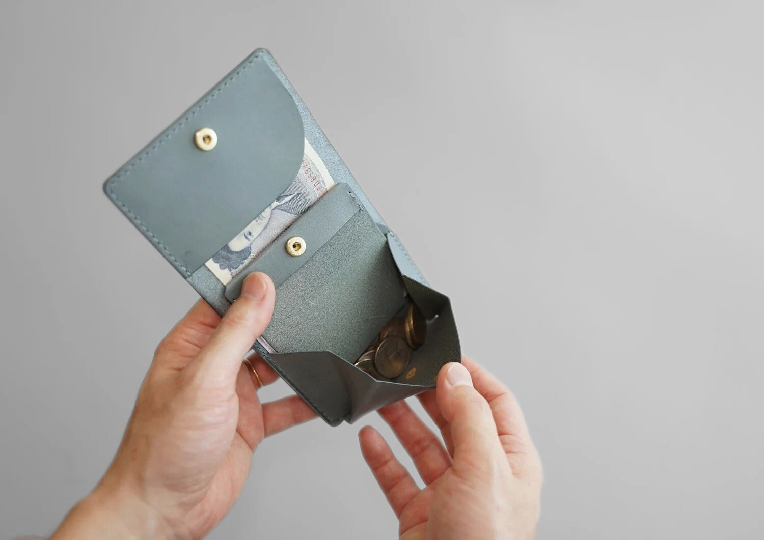 お札は折ることなく横にスライドして出し入れでき、カードもそのまま横向きで7枚ほど収納可能。収納枚数を絞ることで、キャッシュレス決済と併用すれば、より身軽な持ち運びができます。小銭入れのポケットは大きく開くため、出し入れがスムーズな点もこだわりのポイントです。