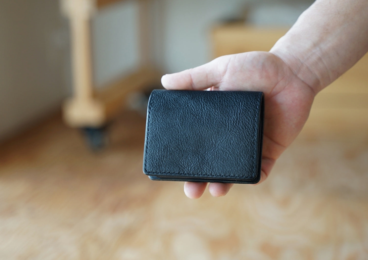 とある展示の企画品として「シンプルで、とにかく薄く。かさばらない財布」を目指してスタートした制作ですが、条件がシンプルすぎて難航しました。形と使い方もシンプルに。だけどかさばらずスマートに...この3点を念頭に置いて考え、辿り着いた先がこの形です。約1年間の試用と修正を繰り返して、ようやく販売をスタートしました。