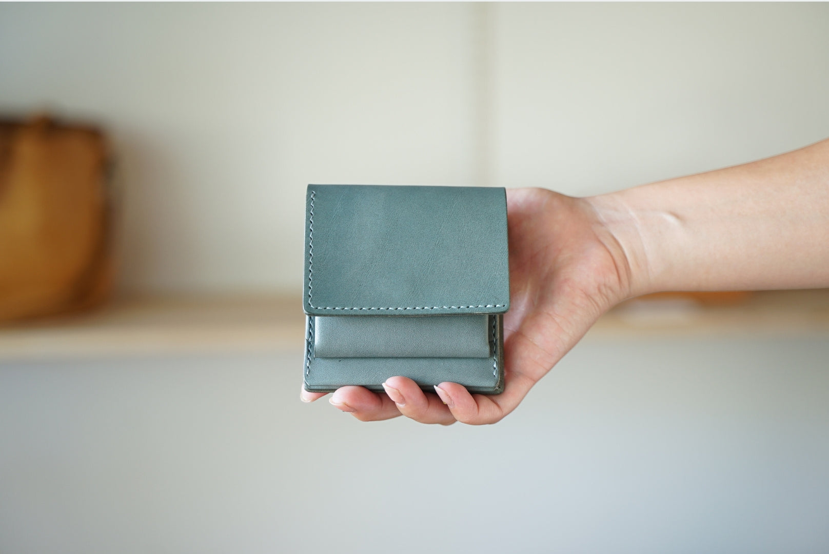 手のひらにおさまるかわいらしいサイズのlayer(うす型二つ折り財布)。