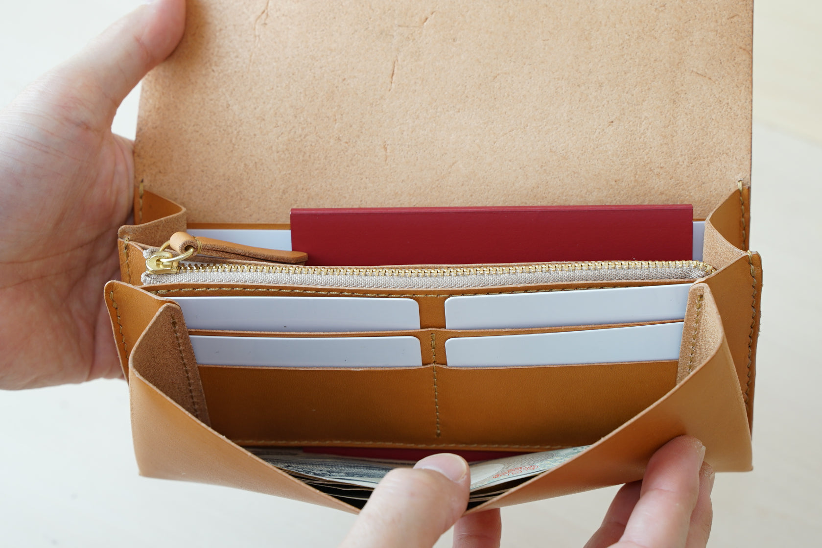 厚手カード各2枚計16枚以上が収納可能です。パスポートもゆったり入るサイズ感です。