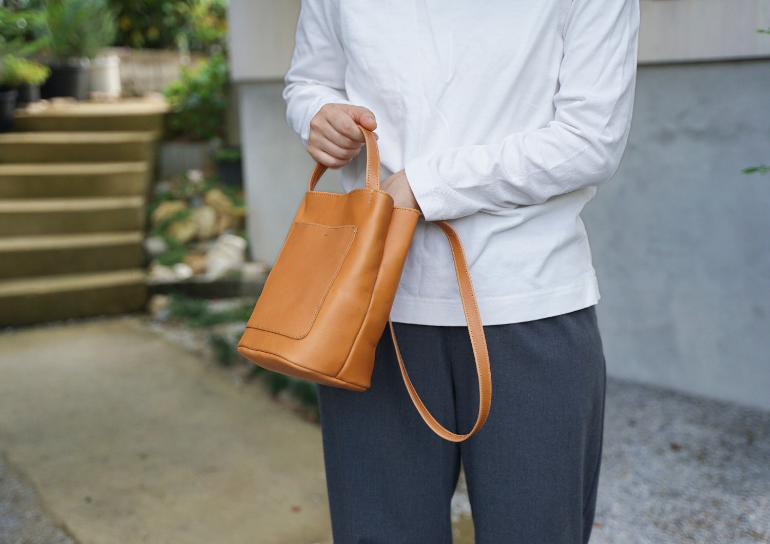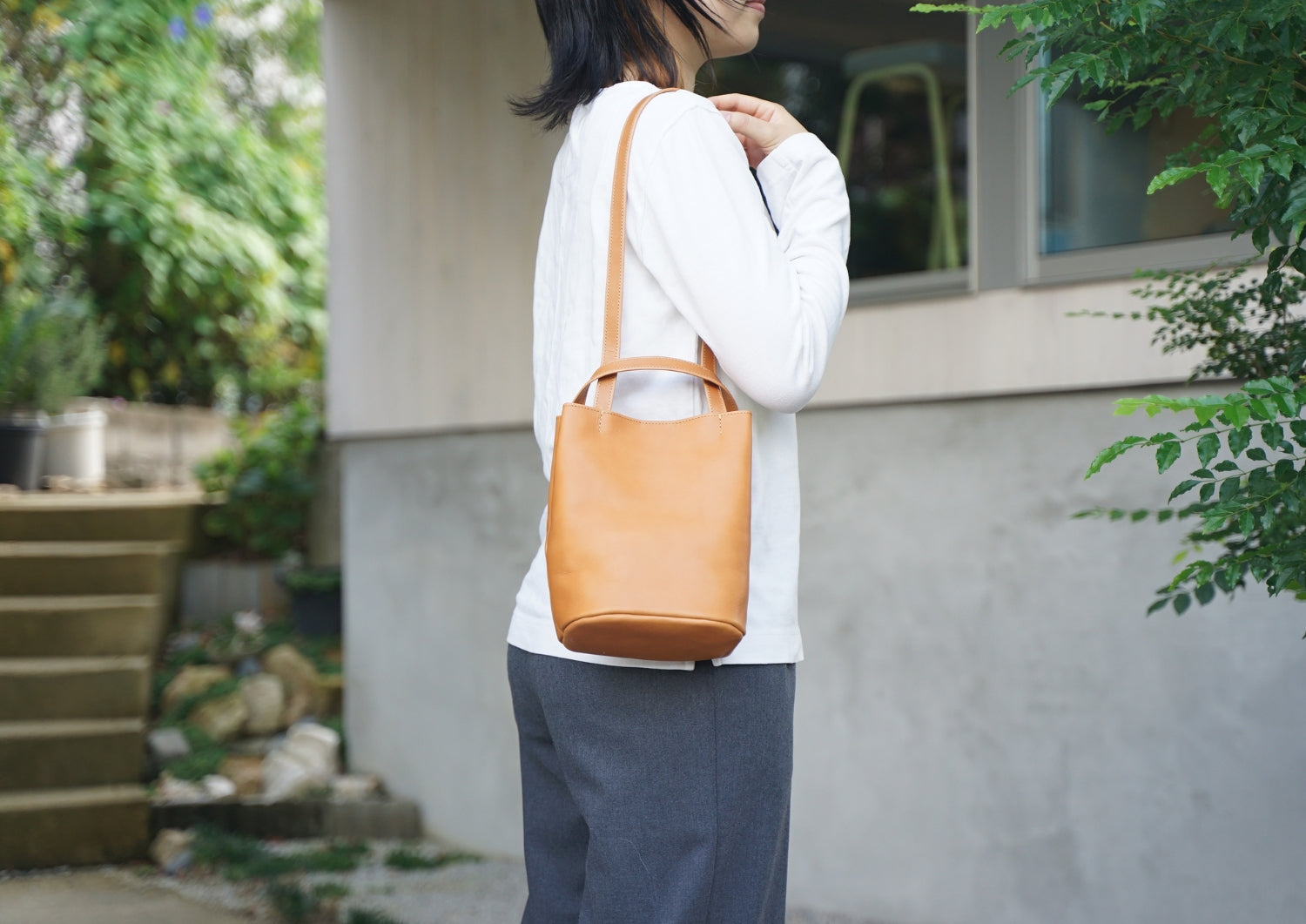 最初はハリのある革ならではのしっかり感を楽しんで。使っていくうちに馴染んできて柔らかく、艶がでてきてもまたよし。経年変化を楽しめるバッグをメンテナンスしながら育てていってほしいと思います。