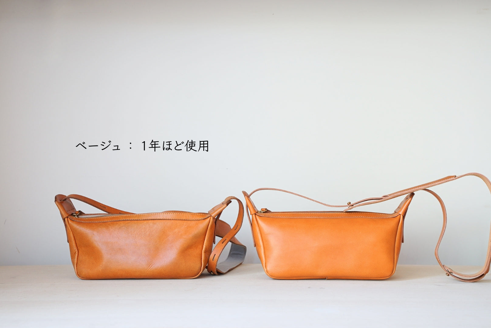 余計な加工を施していないため、牛が生きていた時についたキズなどが残っている場合がございます。植物タンニンなめし牛革の証でもあるエイジング(経年変化)も特徴です。