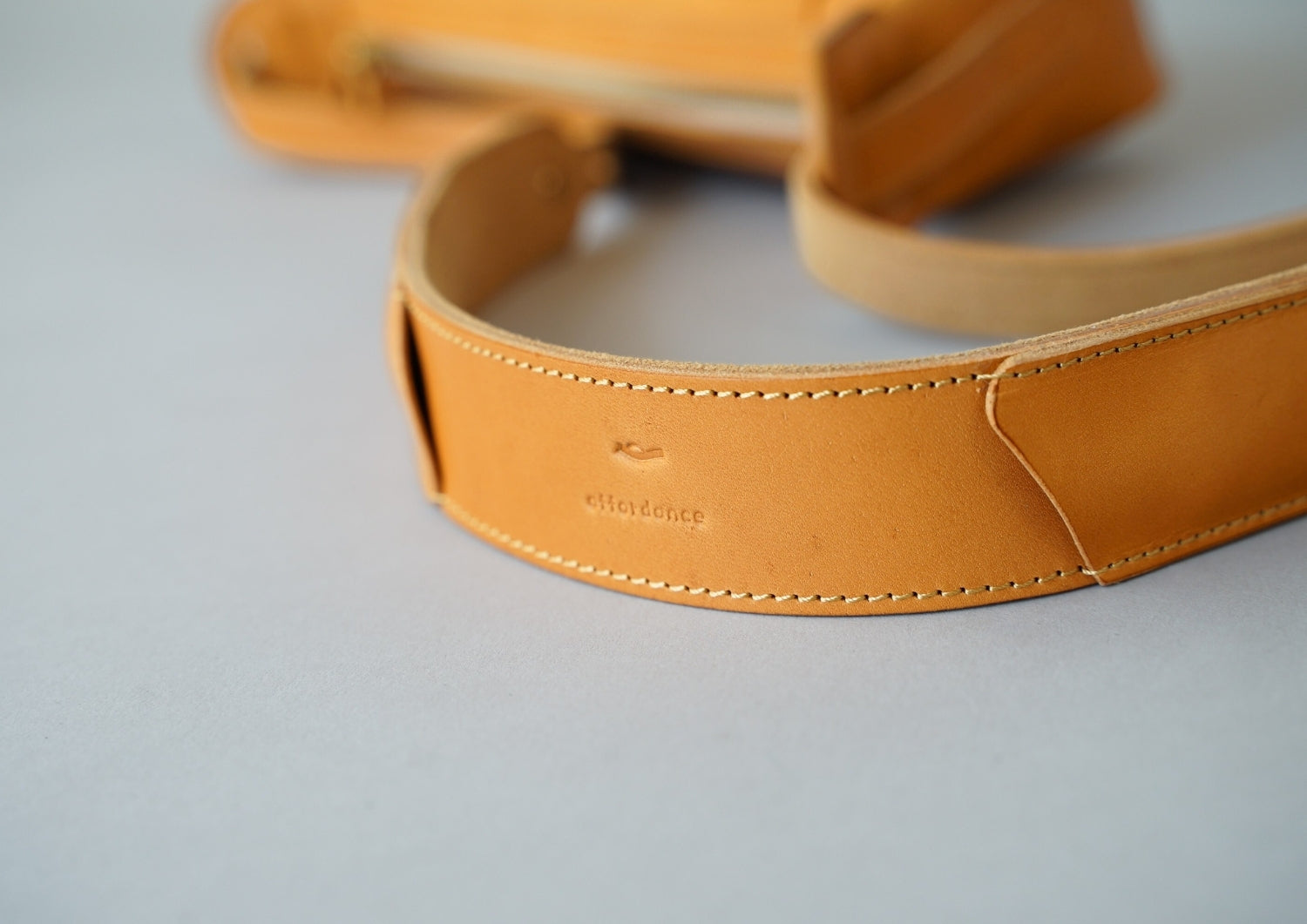Ultrasuede®は、耐久性/通気性/透湿性に非常に優れていてメンテナンスもしやすい人工皮革です。affordanceではショルダーの裏地に使っています。ショルダーに合わせる事で柔軟性が生まれ背負い心地が良く、また、摩擦による色移りや革クズがでないため、衣服を気にせず使う事ができます。ショルダーの長さは85㎝から115㎝まで調節が可能です。