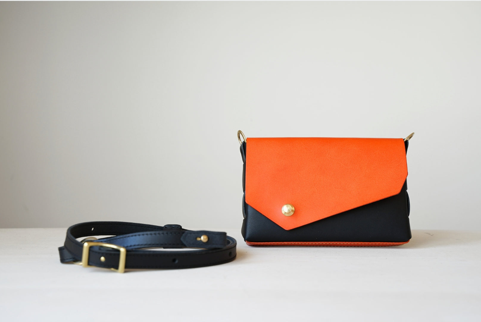 革の特性を活かしたデザインは、フリーハンドの曲線も取り入れ日本の革特有のしなやかさを形にしています。