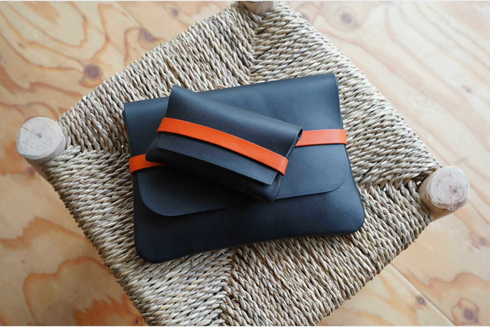 ・多彩な使い方ができる革のかぶせ留めの小物入れ