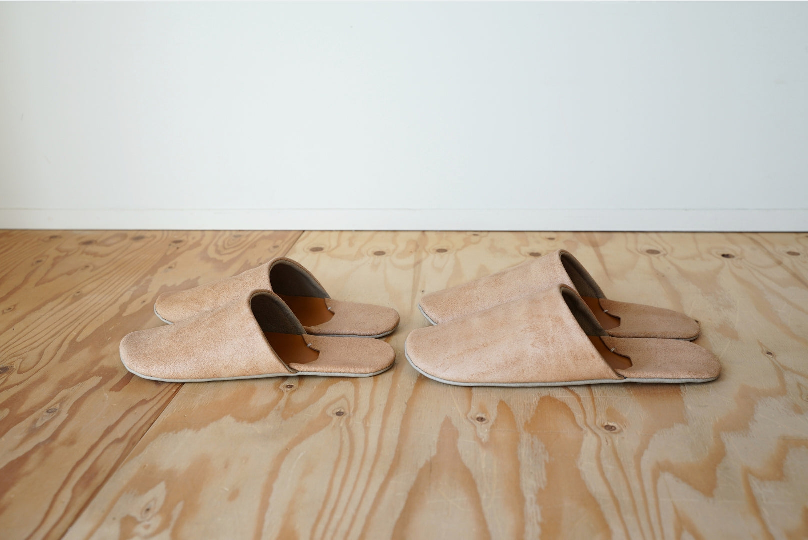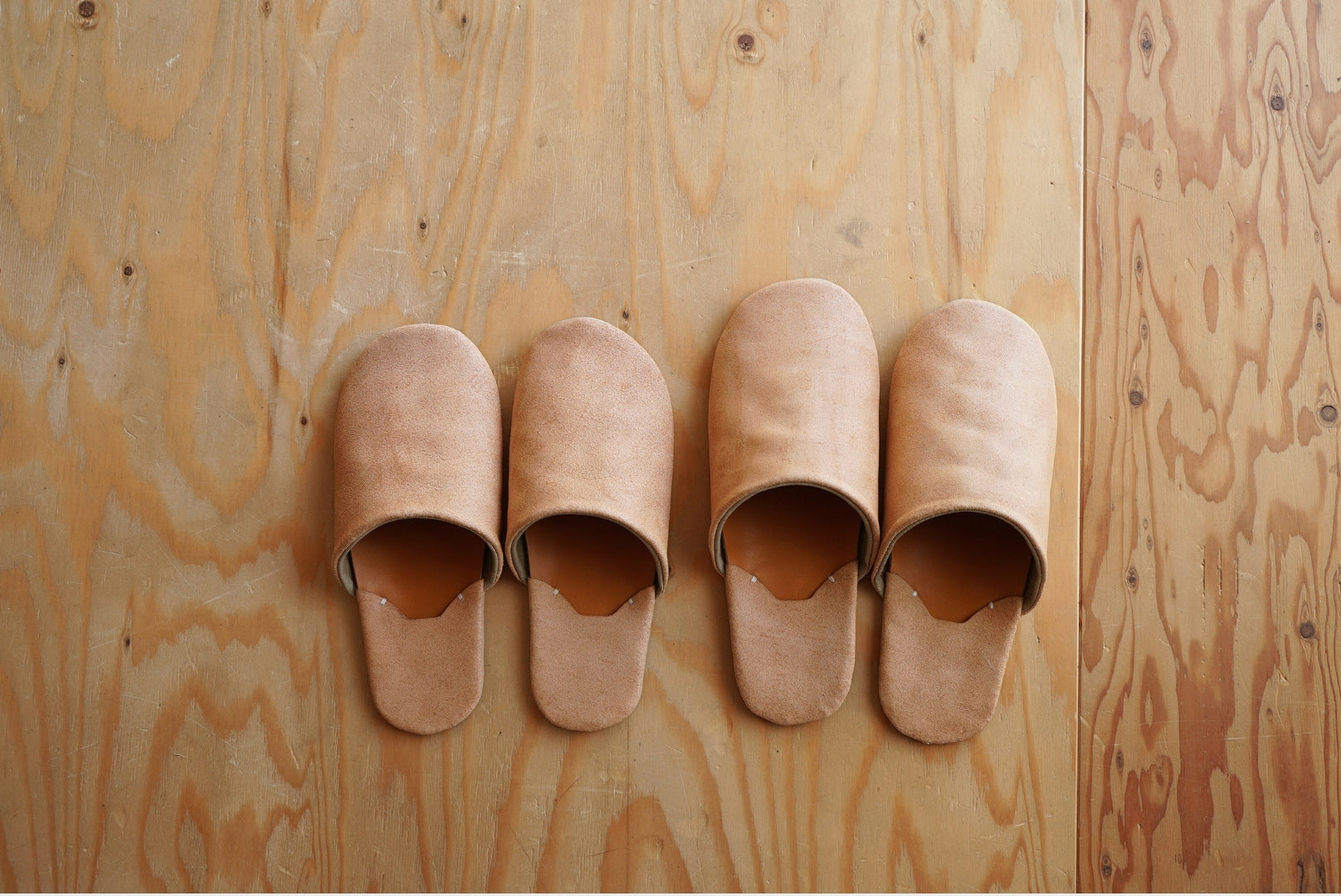 affordanceの革のスリッパ製作の始まりは友人の依頼からでした。はじめた当初でしたのでかれこれ13年ほど作っていますが、初期の形とはだいぶ変わっています。